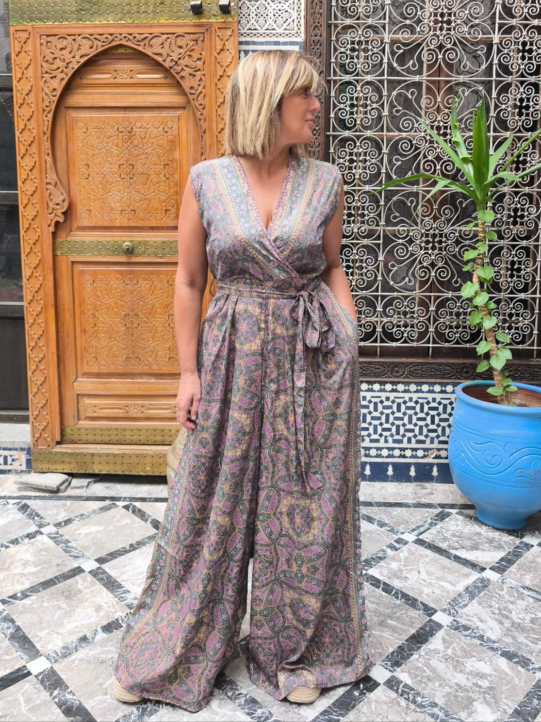 Combi pantalon large parme