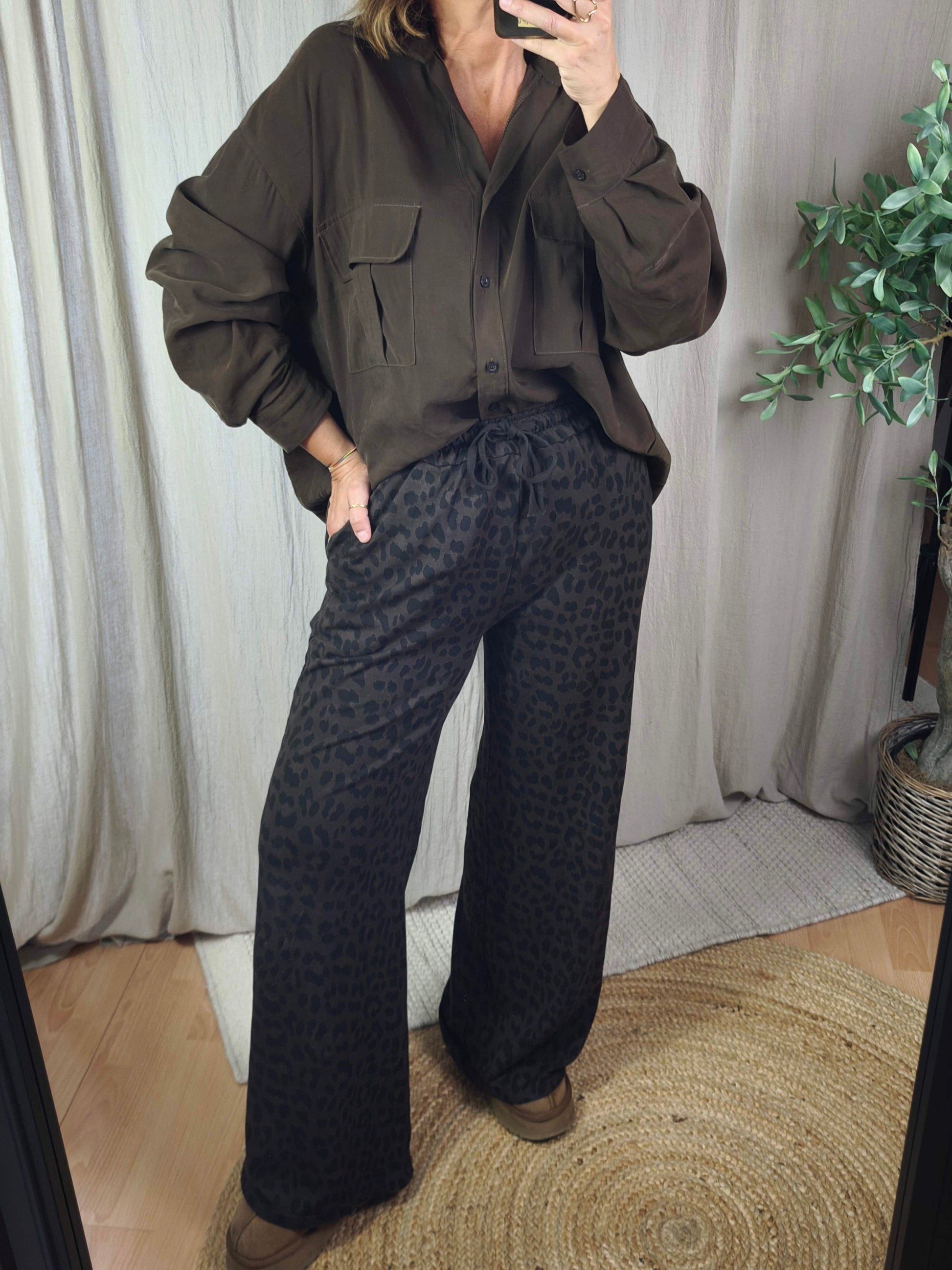 • Pantalon Chocolat imprimé léopard