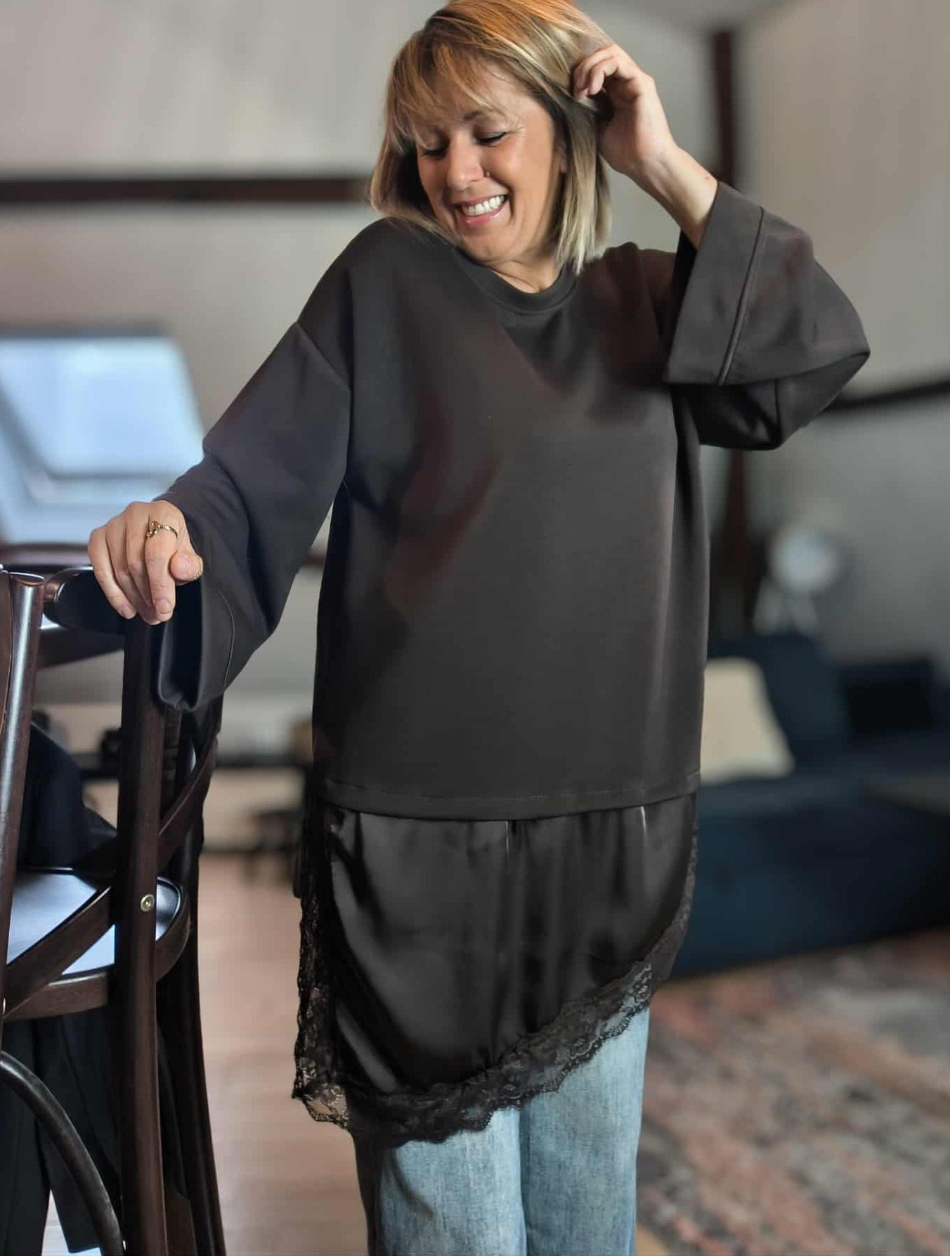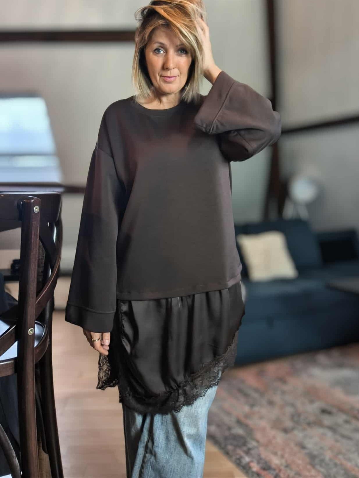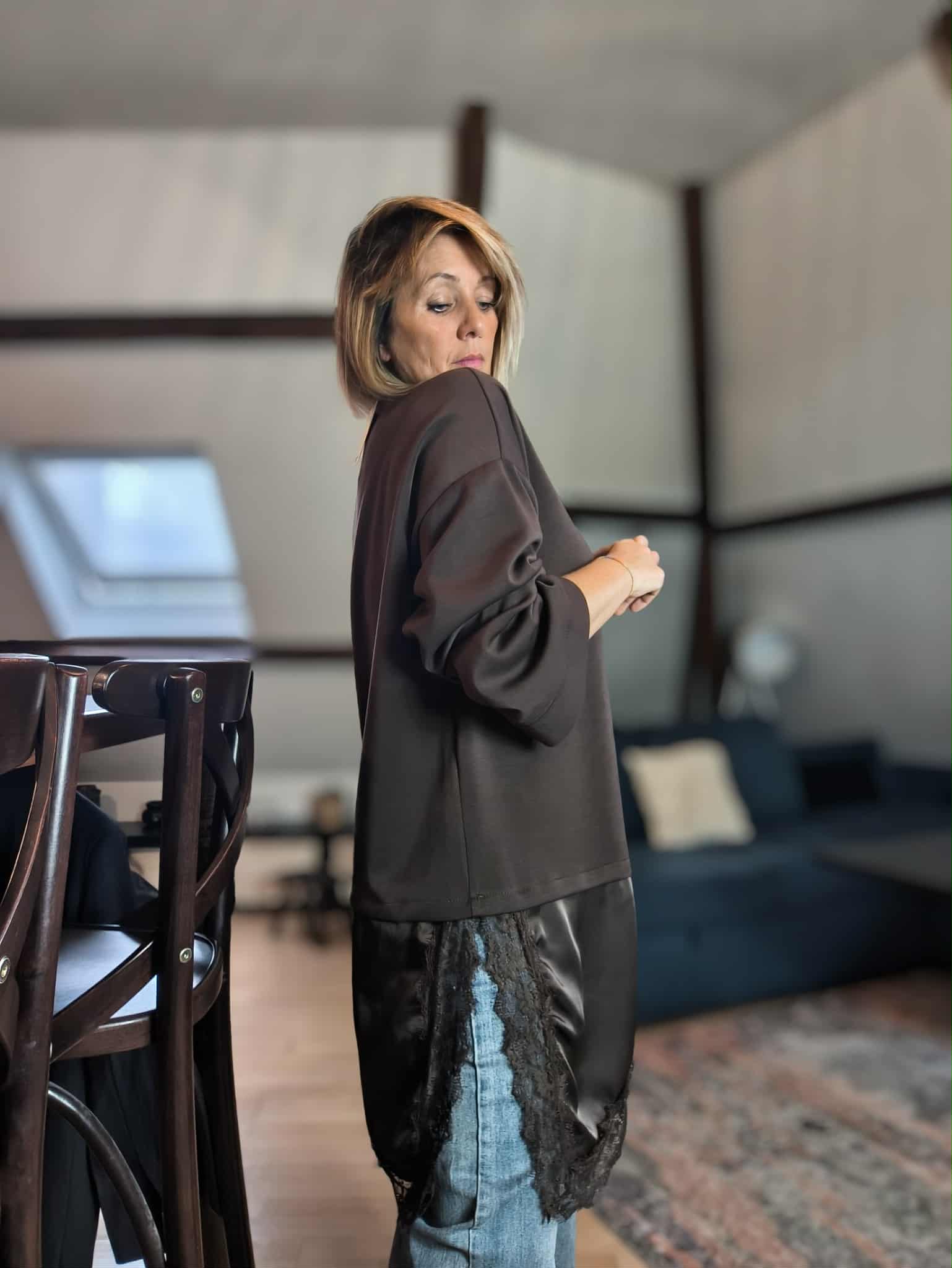 • T shirt avec dentelle chocolat